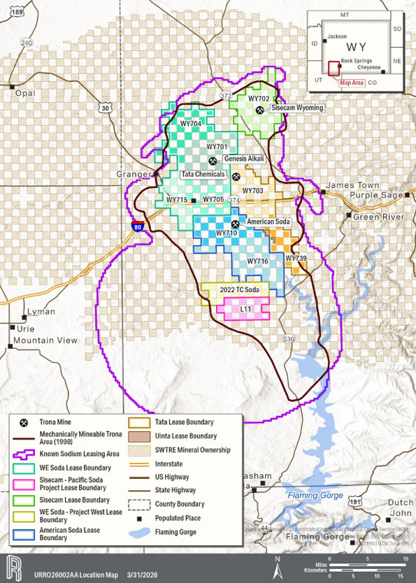 - Enhanced Uranium Optionality: Sweetwater’s land position provides significant uranium exploration potential in Wyoming, the leading U.S. state for uranium production and resources.